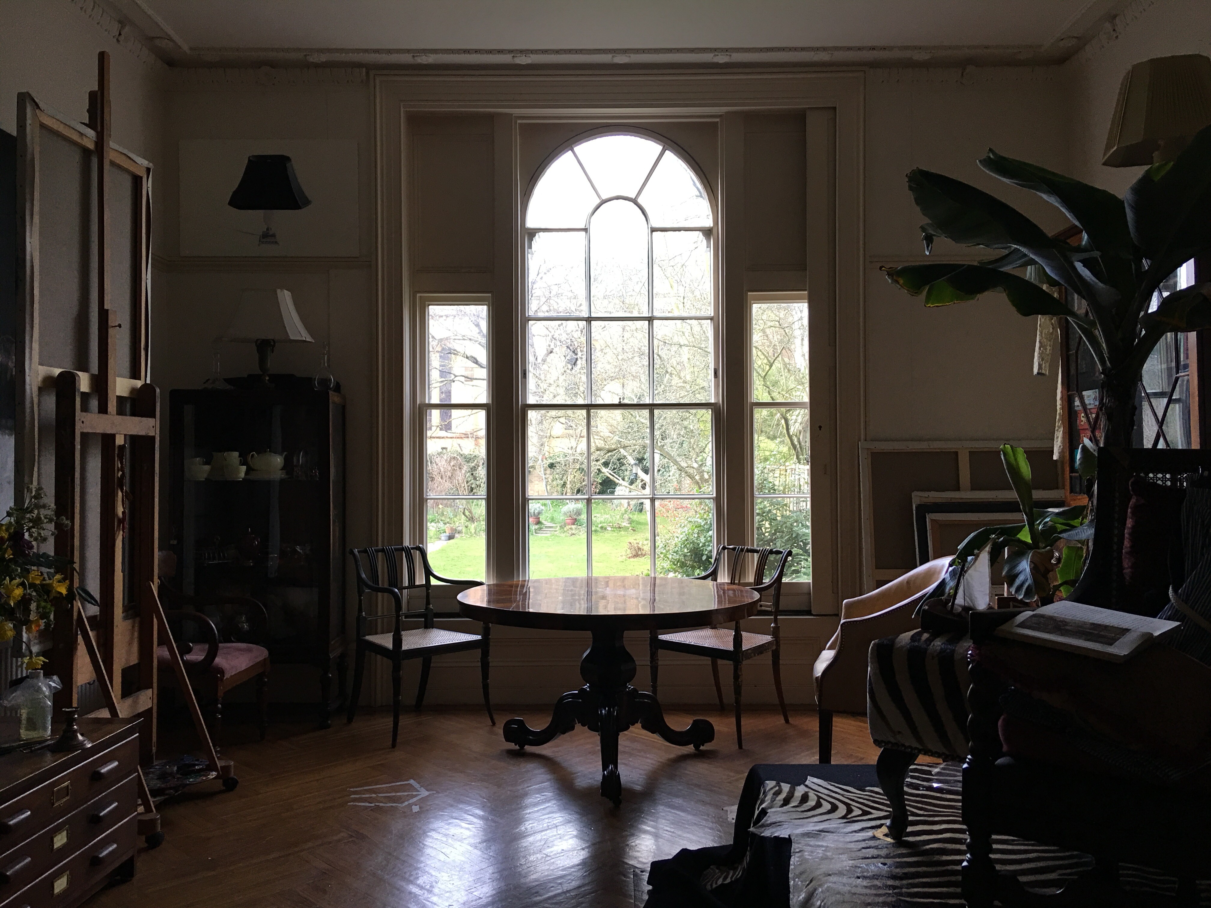 Visitors to the studio are always struck by how different it looks from one week to the next. The set up is always being changed and moved around to adapt to the demands of different projects. Stages are built. Different coloured backgrounds are hung up, shutters are drawn, props are brought in -like one commission that needed a banana tree and zebra skins to refer to a childhood spent in Africa.